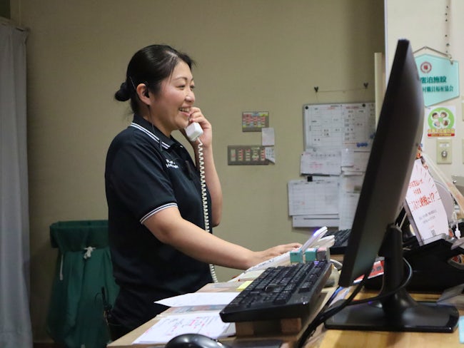 - 入社後、フロントの場合は日帰り入浴の受付や売店のお会計業務からスタート。